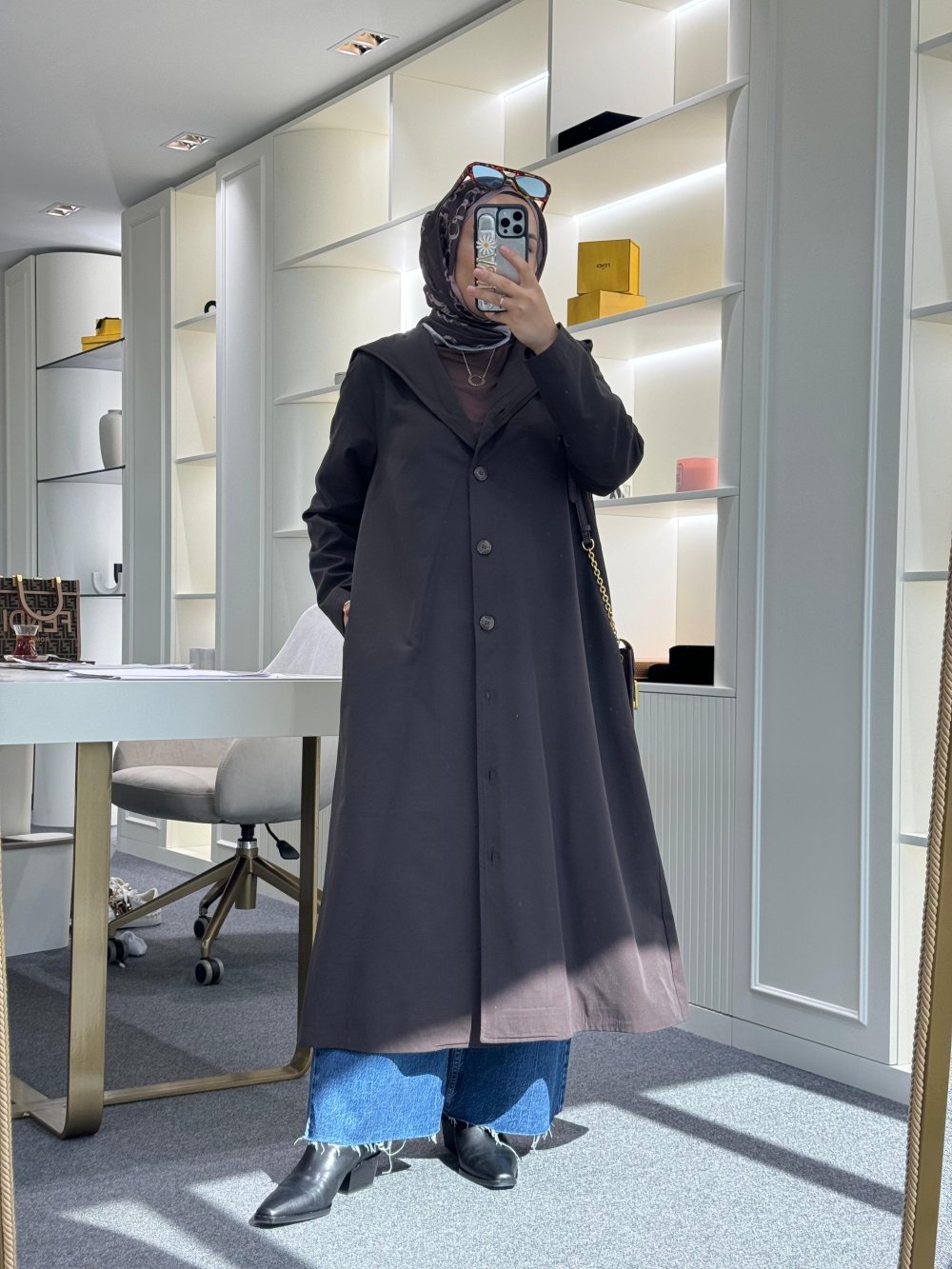 Kapüşonlu Astarlı Trençkot Acı Kahve