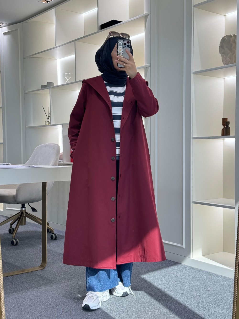 Kapüşonlu Astarlı Trençkot Bordo